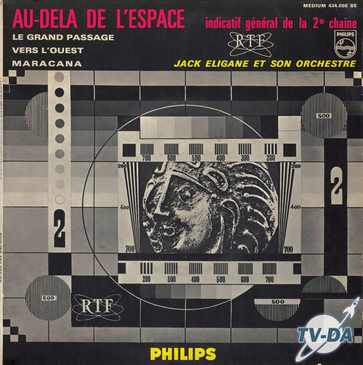 Indicatif de la 2ème chaîne ORTF - Au delà de l'espace (45 tours) Label : Philips Référence : 434 866 Année : 1964 Face A : Au dela de l'espace 1'38 Le grand passage 1'40 Face B : Vers l'Ouest 2'13 Maracana 2'18 Compositeur : J.P. Calvet / R. David commentsFacebook Social Comments