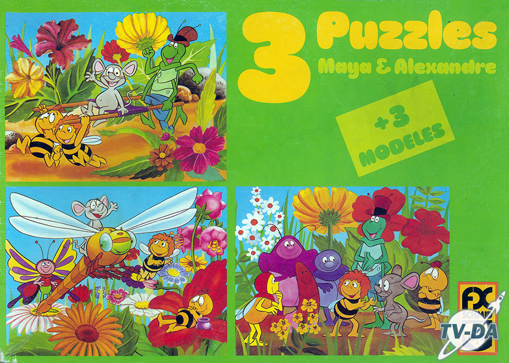 Maya l'abeille, willy, Alexandre et Flip (3 puzzles) Marque : FX Schmid Référence : 91/95702 Année : 1979 Pièces : 3 x 120 Format : 21 x 28 cm Matière : Carton Divers : 3 modéles commentsFacebook Social Comments