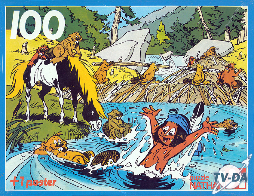 Yakari et les castors (puzzle) Marque : Nathan Référence : 555 257 Année : 1984 Pièces : 100 Format : 31,5 x 41,5 cm Matière : Carton Divers : Poster