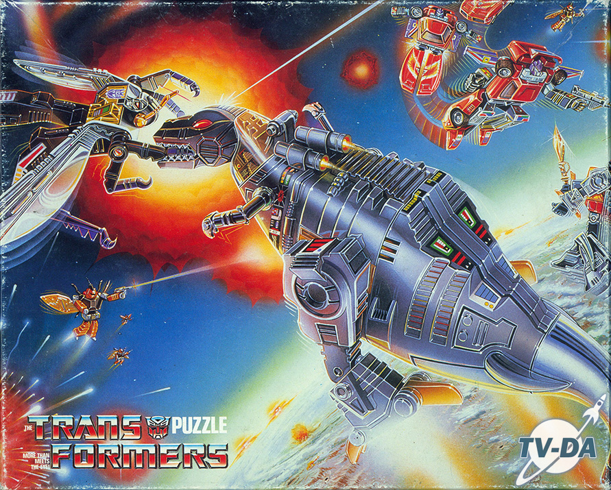 Transformers (Dinobots contre Insecticons) puzzle Marque : MB Référence : 3090.21 Année : 1986 Pièces : 200 Format : 42 x 34 cm Matière : Carton Divers : commentsFacebook Social Comments