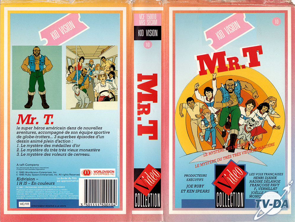 Mr T. (k7 vidéo) Contenu : 3 épisodes Genre : Aventures policières, Action Durée : 75 mn Année : 1987 Support : VHS Edition : Kid Vision Collection : Vidéo Collection