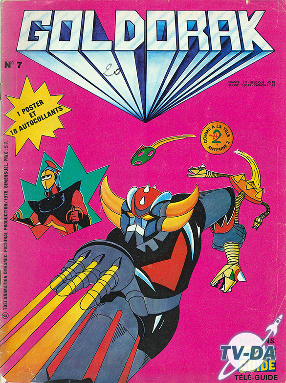 Goldorak n°7 Numéro : 7 Titre : Format : Page : Couverture : Souple Prix : Edition : Année : Contenu : 1 histoire, un poster et 18 autocollants commentsFacebook Social Comments