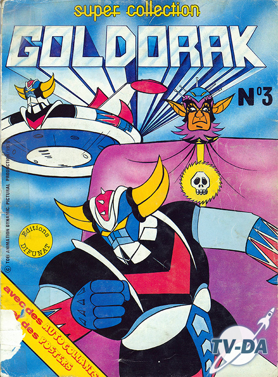 Goldorak super collection n°3 Numéro : 3 Titre : Format : 23 x 27,6 cm Page : Couverture : Souple Prix : Edition : Difunat Année : Contenu : 2 histoires, des posters et des autocollants commentsFacebook Social Comments