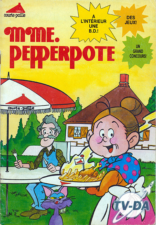 Mme Pepperpote n°2 Numéro : 2 Titre : Format : 18,1 x 26 cm Page : 20 Couverture : Souple Prix : Edition : Godard/Bojustow Année : Contenu : 1 histoire et des jeuxDivers : Offert par Courte Paille commentsFacebook Social Comments